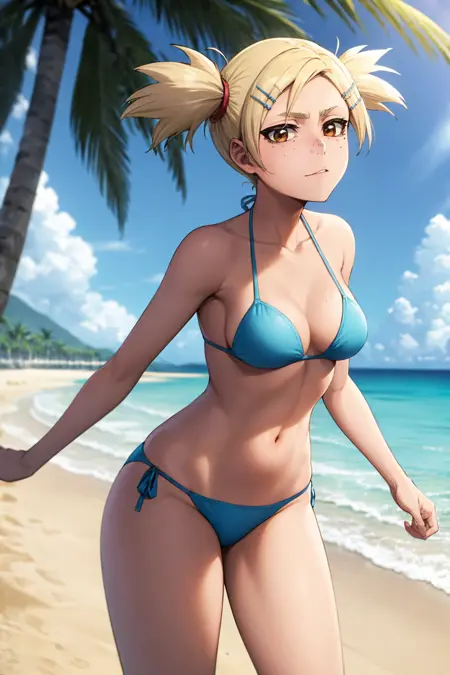 基本プロンプト:1girl, sarugaki hiyori, blonde hair, short twintails, brown eyes, freckles, hairclip