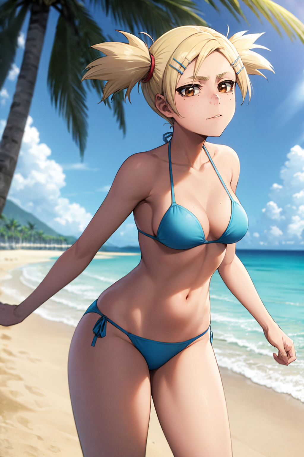 Basic prompts : 1girl, sarugaki hiyori, blonde hair, short twintails, brown eyes, freckles, hairclip