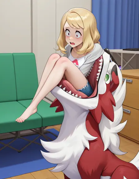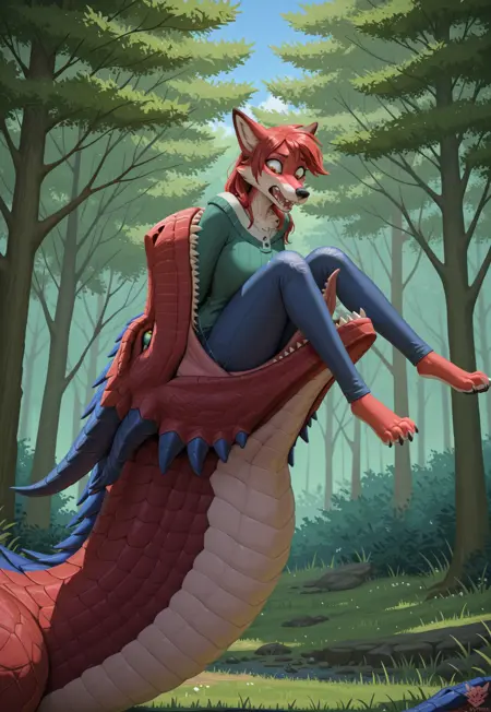 This LoRA consists of the concept of a character 'pred' swallowing another character 'prey' in a 'butt-first' manner, i.e, with the bodies bent inside the mouth.
