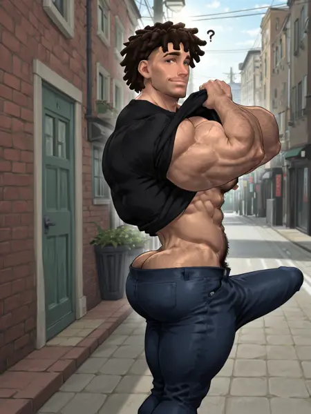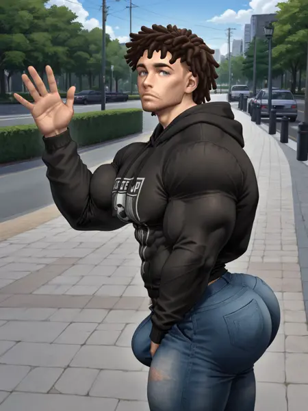 Main Prompts: Shawn Wolfmier, grey eyes, facial hair, stubble, dark-skinned male, dreadlocks,