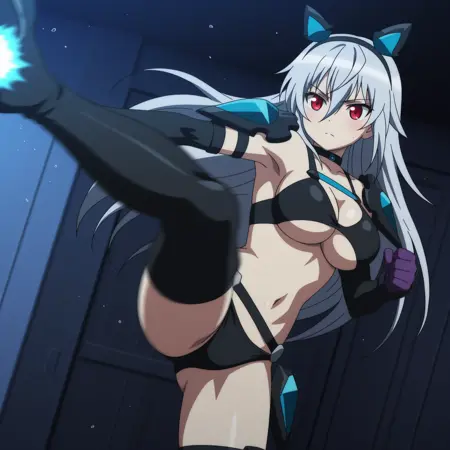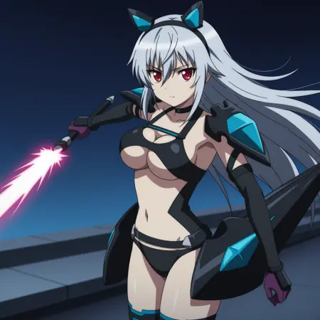 | Trained Words | grey hair, long hair, red eyes, large breasts, Copied! bra, cleavage, underboob, panties, hairband, fake animal ears, choker, shoulder armor, armor, thighhighs, thigh boots, elbow gloves,Copied! holding weapon, red energy sword, Copied! |