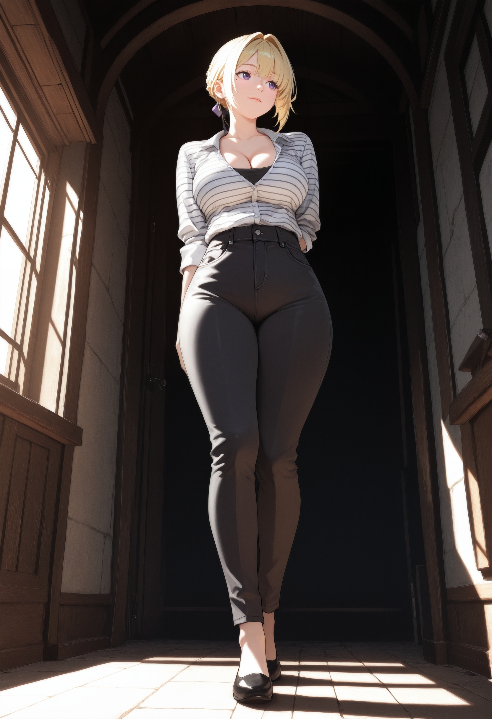 This model is designed to render the character outside of their official outfit, allowing for more flexibility in clothing and style while keeping the character recognizable. This is to avoid outfit elements from leaking through and to better support variations like swimwear or alternate clothing/styles.