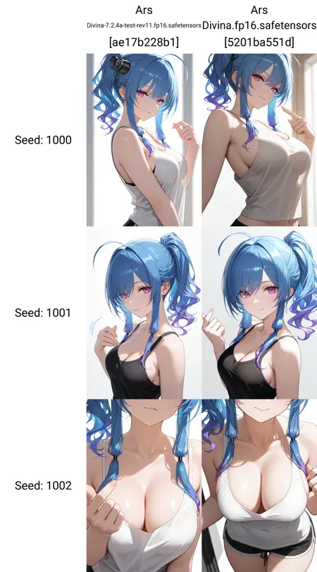Illustrious-XL, NoobAi 및 Pony Diffusion을 기반으로 하므로, 프롬프트, 태그 및 기타 내장 기능에 대해서는 해당 페이지를 참조하세요. Ars Aeterna와 반대로, 이 모델은 평면적인 톤을 생성합니다.