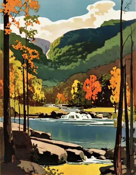 This is a LoRA dedicated to the style of American illustrator, Leslie Ragan. He is best known for his work on Railway travel posters. His style works great for landscapes, cityscapes, and great for a travel poster aesthetic.