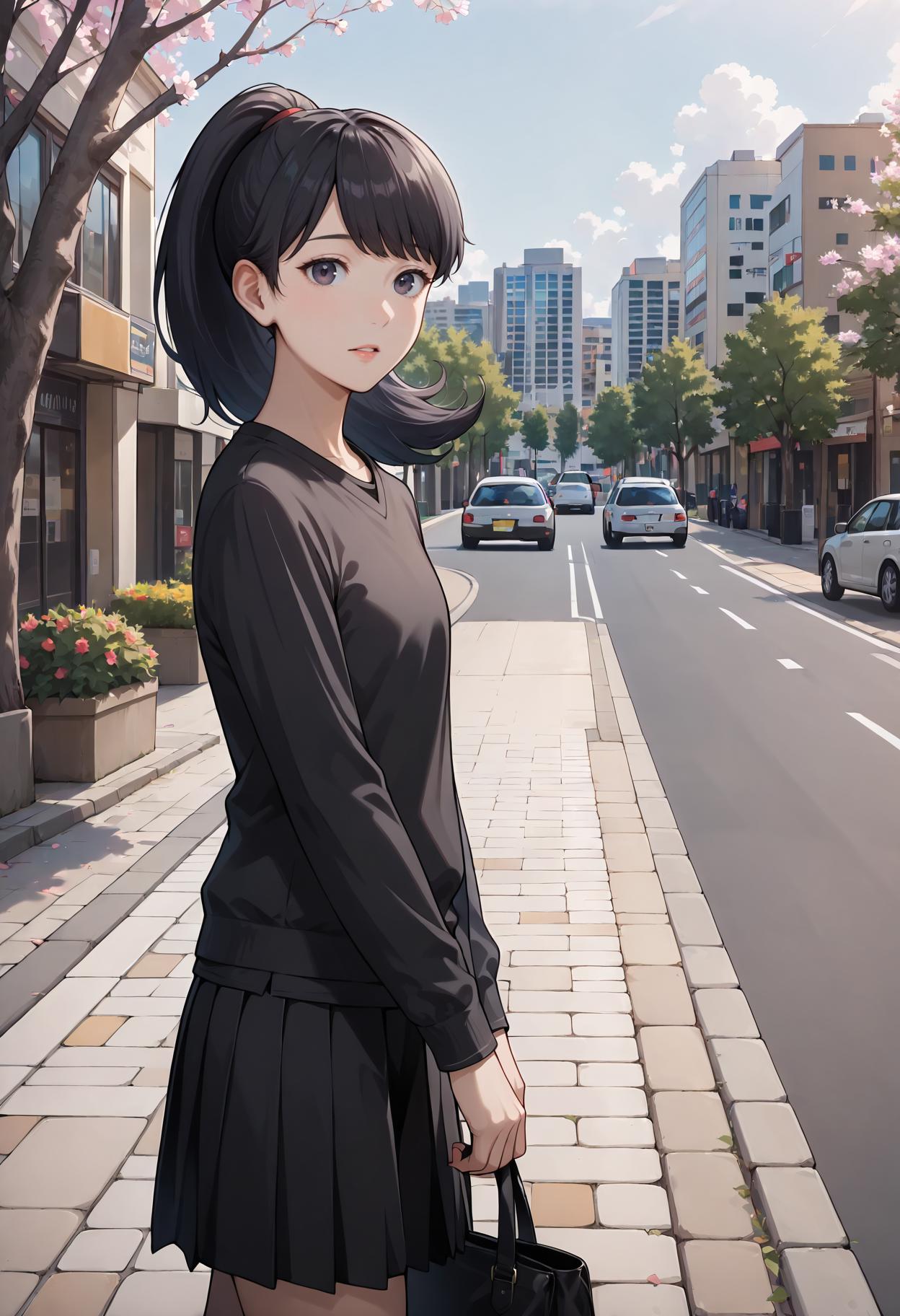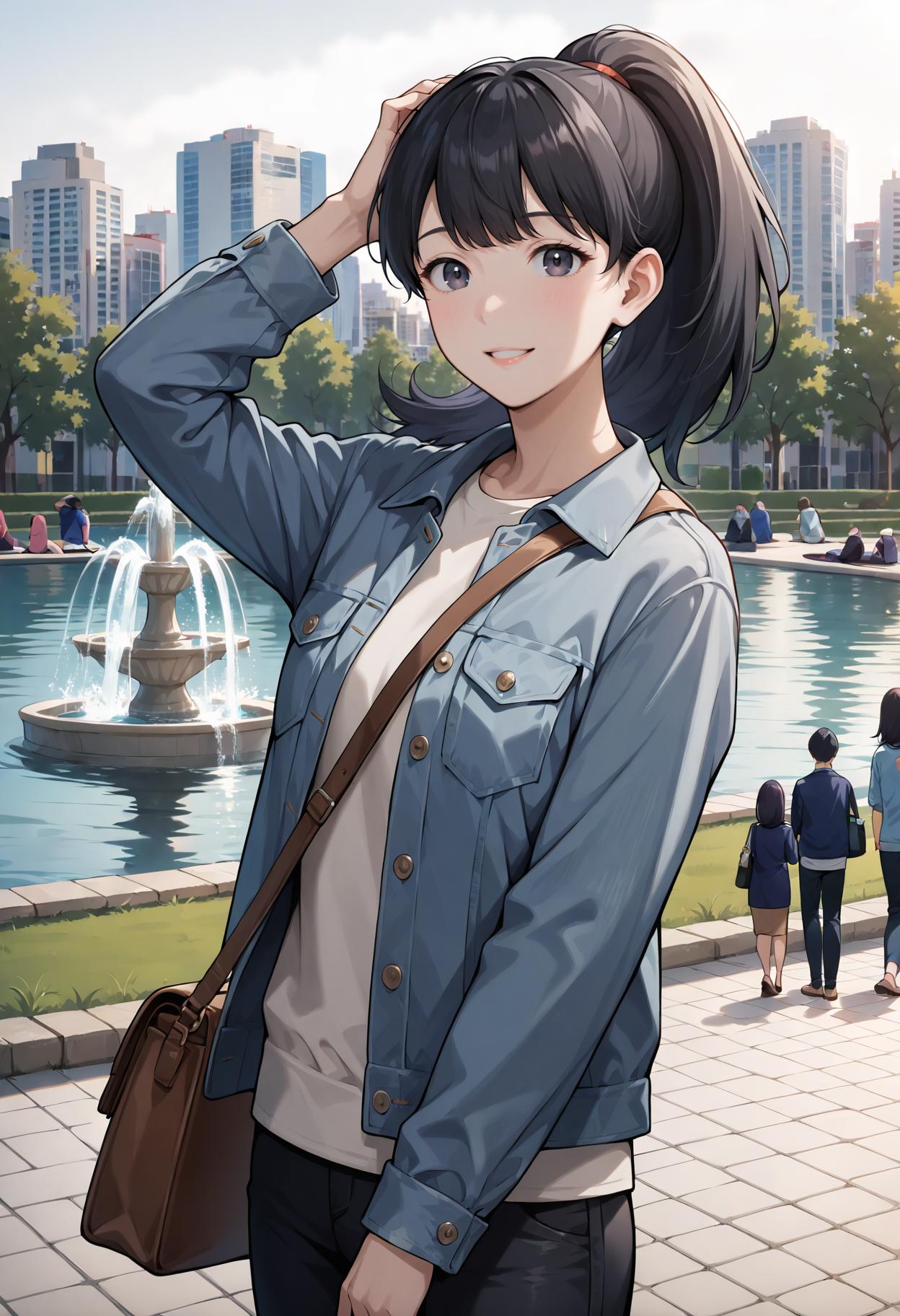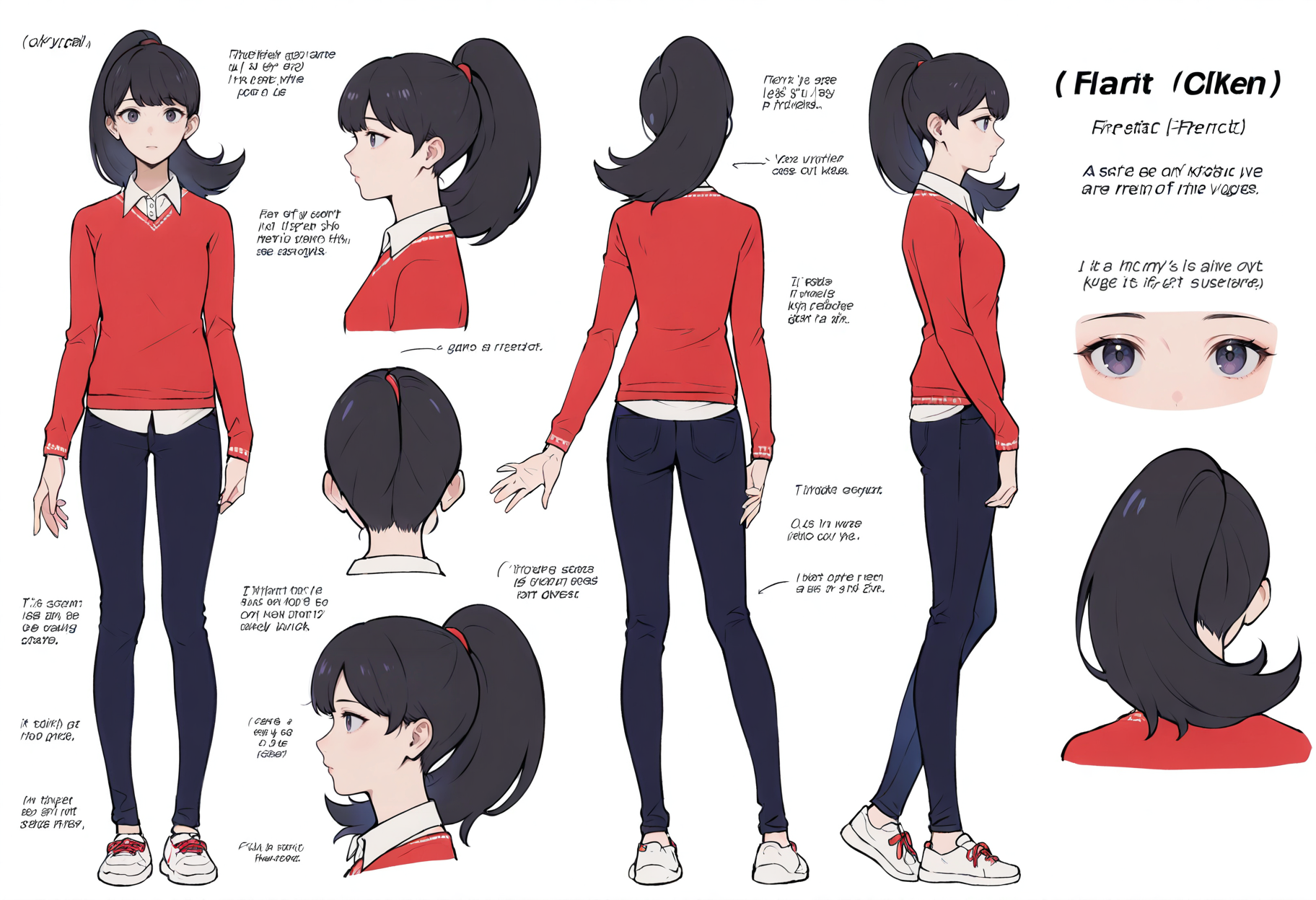Appearance: 1girl, black hair, ponytail, long hair, bangs, black eyes, purple eyes, blue eyes, high ponytail, medium hair