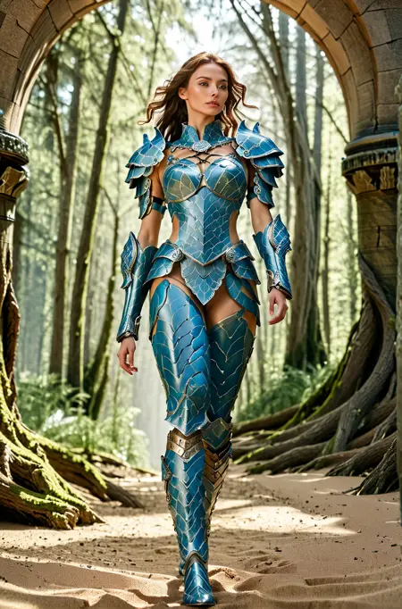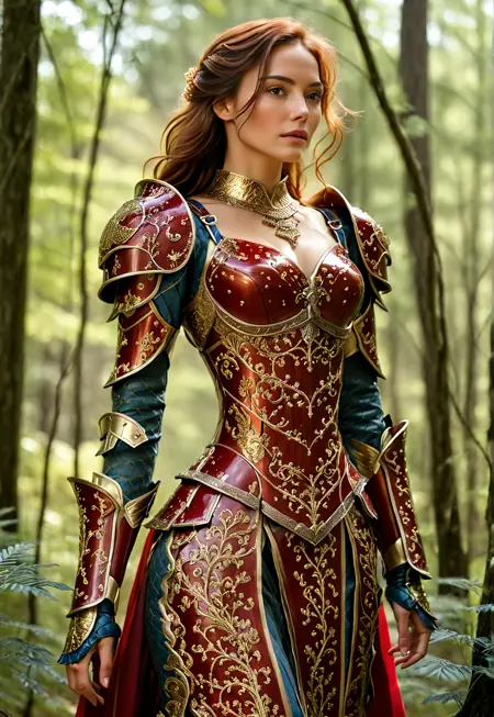 model in clothing armor gemstone