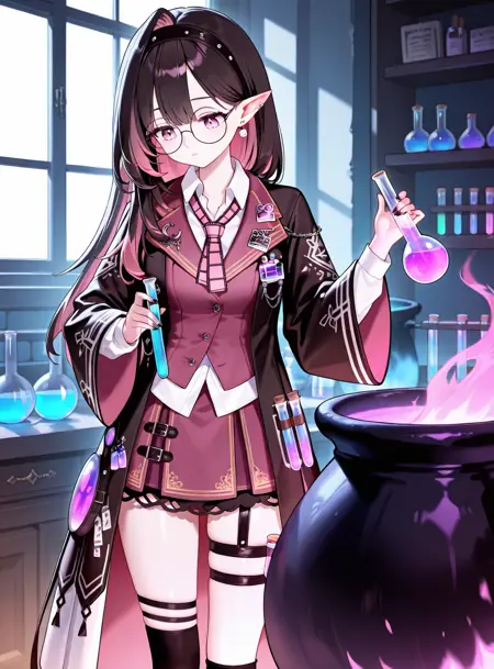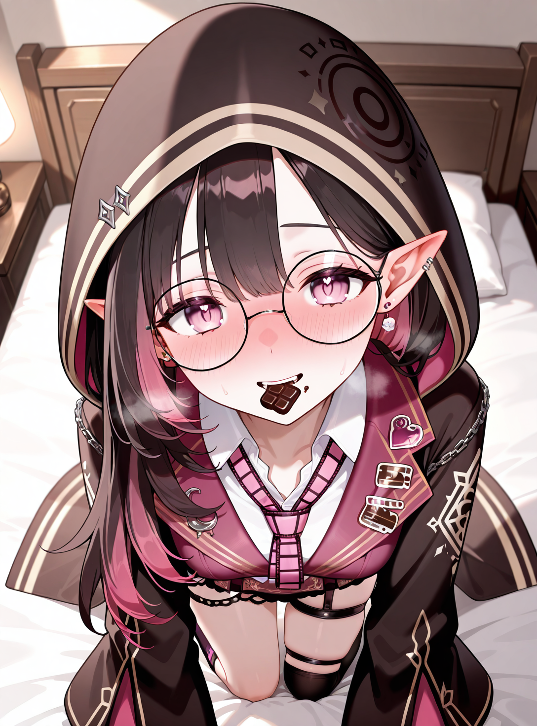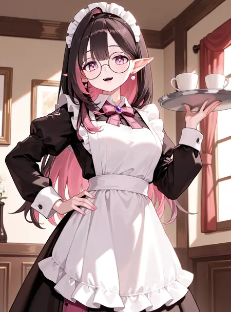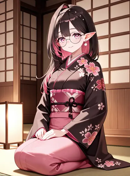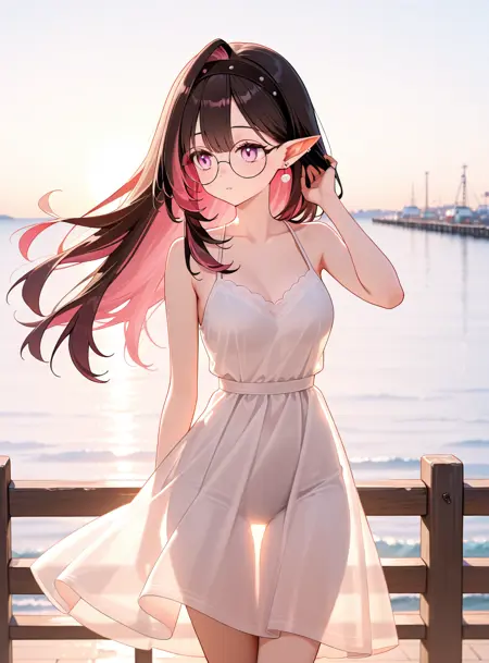 "Nema Filluna, long hair, round eyewear, pointy ears, earrings,"