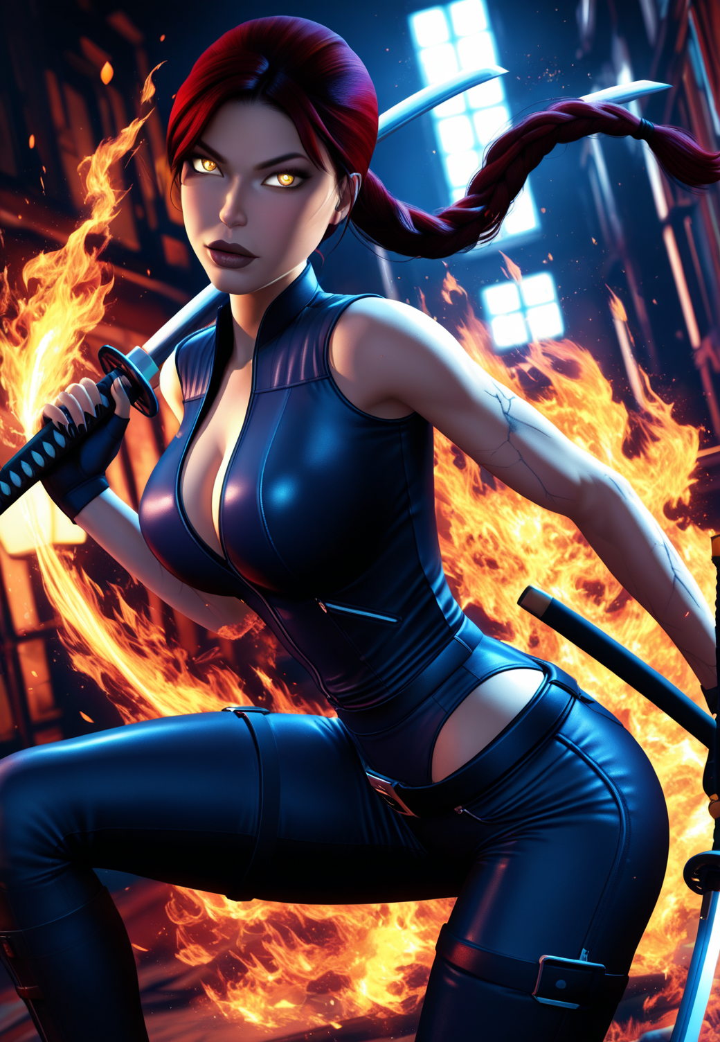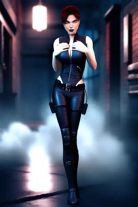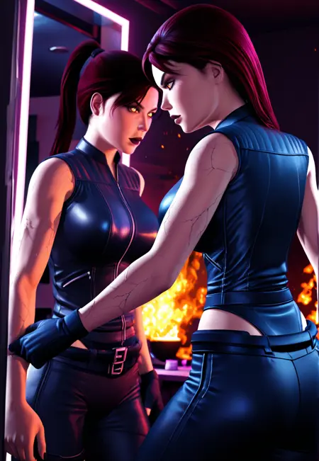Unleash the eerie, silent menace of Lara Croft’s dark reflection with this Doppelgänger LoRA,.
