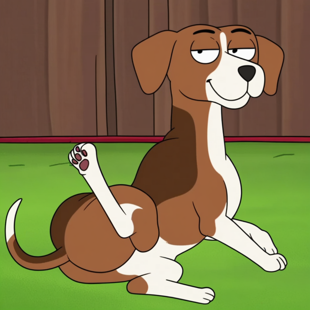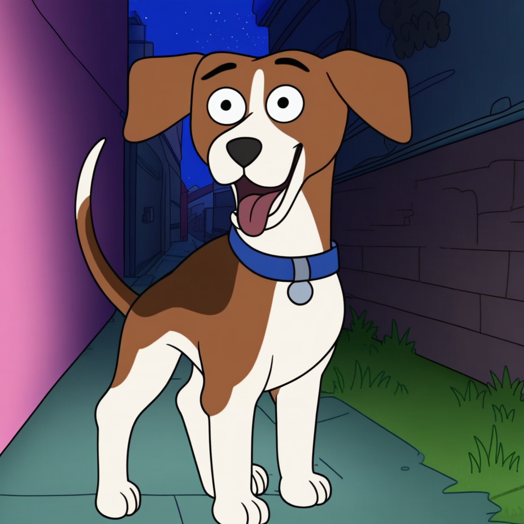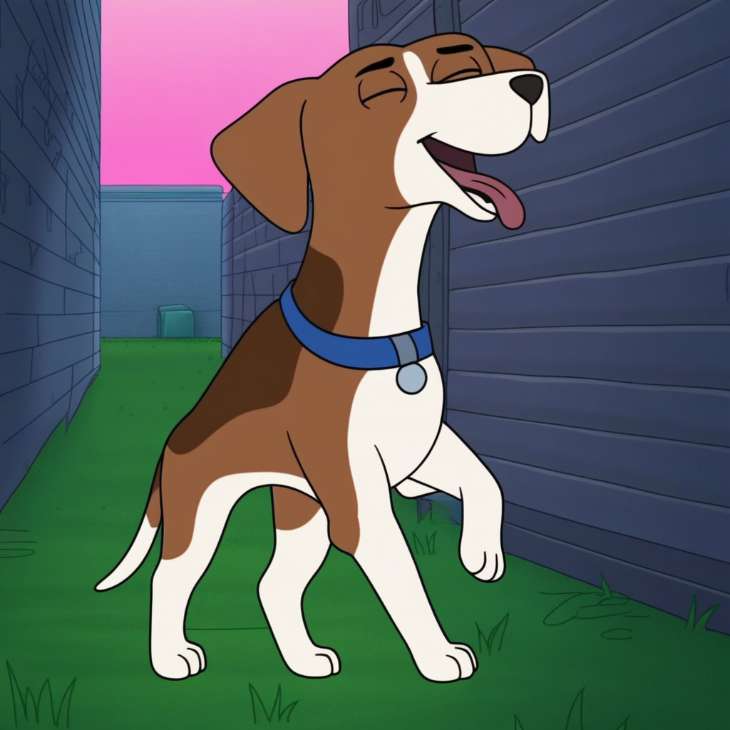 プロンプト: ジュリエット・ビーグル、野生、単独、ブルーカラー、黄色のドレス