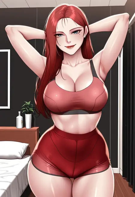 裴惠贞:bae_hye-jung,美丽的红色头发,美丽的低马尾,丰满而蓬松的胸部,美丽的浅蓝色眼睛,