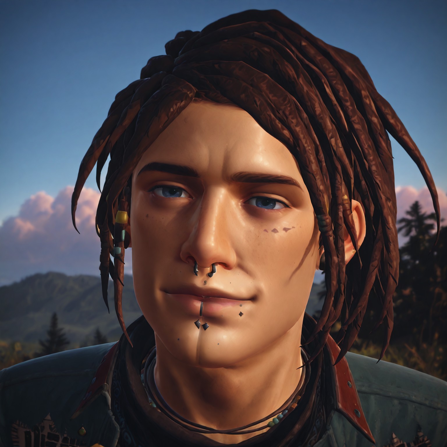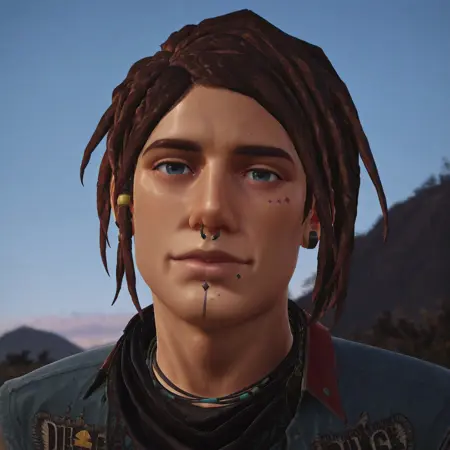 dreadlocks, jewelry, lip piercing, brown hair, dark-blue eyes