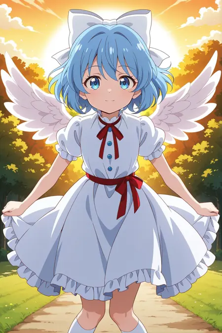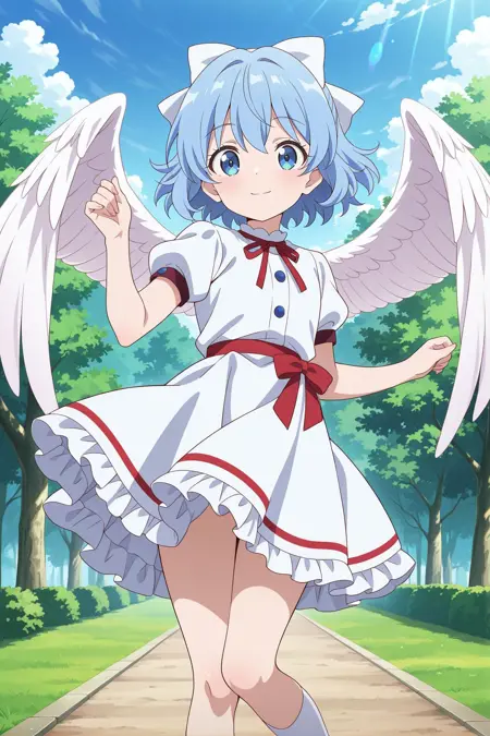 mai, 1girl, solo, blue eyes, blue hair, short hair, white wings,
