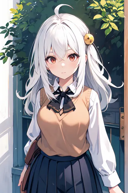 服装提示词:ninym ralei, ahoge, 长发, 发饰, 无袖上衣, 棕色过膝袜, 吊袜带, 裙子, 白手套, 手臂吊袜带