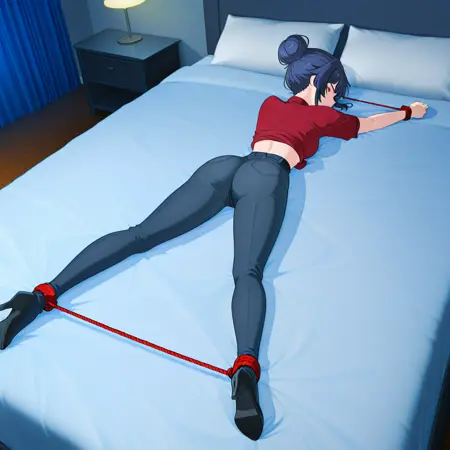 This is a lora for scenes where subject is tied on bed, mostly in spreadeagle position. All posts are welcomed, and hope you enjoy this lora.