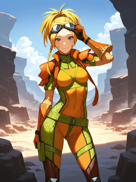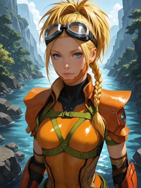 Rikku's divesuit from early scenes in Final Fantasy X. This was pretty finicky to get working since there's not a ton to work with, mostly screenshots and some character art. It really wants to give her multiple pair of goggles and some of the straps and fiddly bits are tricky.
