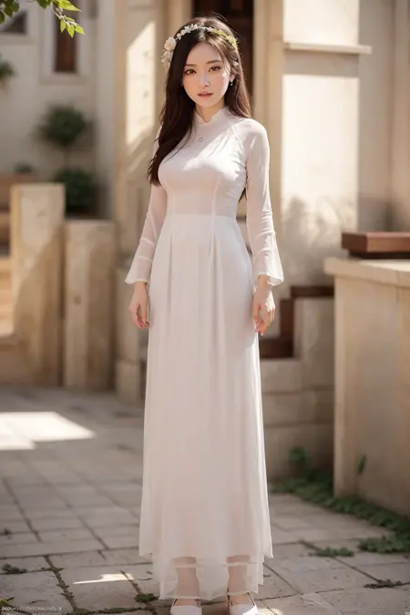 (lora:vngirlx2:0.3 lora:vngirlx6:0.3lora:aoDaiVietnameseLong_v10:0.63) ,绑发辫,(头发上的白色丝带),(沙滩背景:1.1) ,最佳质量,杰作,插画,极其精致美丽,极其详细,CG,Unity,8k壁纸,惊人,精细细节,杰作,最佳质量,官方艺术,极其详细的CG Unity 8k壁纸,荒谬分辨率,难以置信的荒谬分辨率,巨大文件大小,超精细,高分辨率,极其详细,美丽的细节女孩,极其详细的双眼和面部,美丽精致的眼睛,脸部光照,1女孩,全身,(全身镜头)