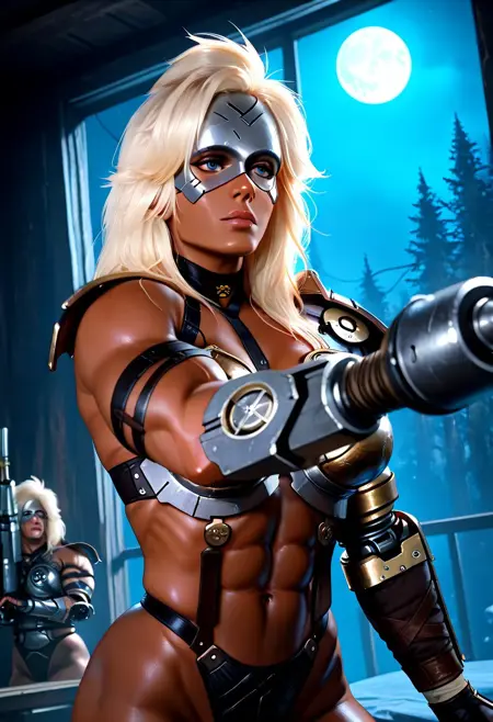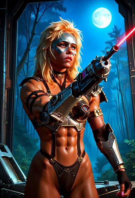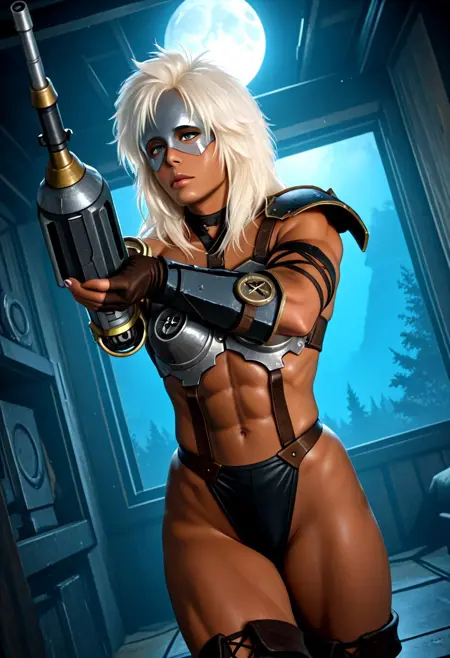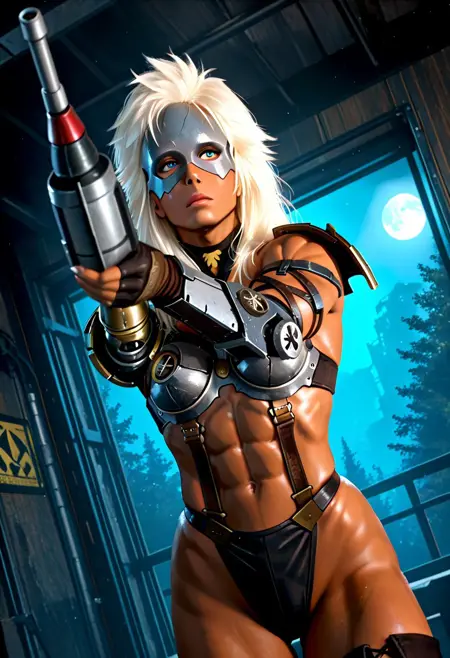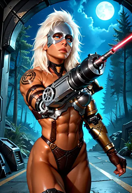 | 训练词汇 | Alienator_(character) 已复制! Alienator_(character) 1woman, female_android, tanned_skin, dark-skinned_female, muscular, muscular_female, buff_female, abs, biceps, thick_body, female_bodybuilder, lips, halterneck, robotic_mask, silver_mask, armor, shoulder_pads, white_hair, long_hair, bikini_armor, navel, narrow_hips, highleg_bikini, highleg_panties, robotic_armor, robotic_right_arm, single_fingerless_glove, left_fingerless_glove, amputee, amputated_right_arm, right_laser_weapon, right_arm_weapon, single_arm_weapon, prosthetic_right_arm, single_prosthetic_arm, right_shoulder_armor, gautlets, single_robotic_right_arm, laser gun, right_laser_gun_prosthetic_arm, black_high_heels, high_heel_boots, cyberpunk, 80s_style, 3d)), realistic, ultra-detailed 已复制! |