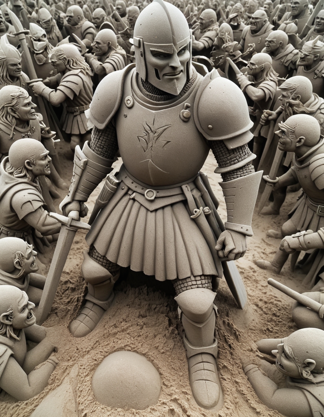 📜 描述:此 LoRA 可将任何提示和场景转换为逼真的沙雕作品。它最适合使用简洁、直接的自然语言提示,避免描述颜色和纹理细节,仅以概括性方式描述场景。