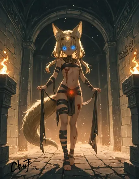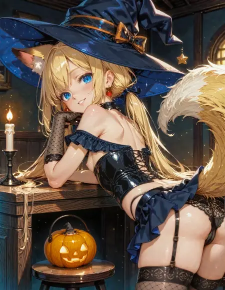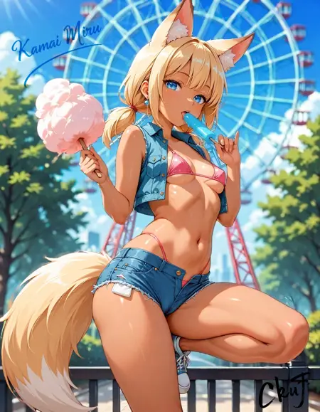 Its a high-quality LoRA for creating adorable fox character with a unique style. A slender girl with long yellow pigtails, bright blue eyes, and fox ears and tail. Focusing on an elegant and slightly playful aesthetic with fox girl details, including an expressive face with a sly smile and memorable features. Perfect for creating anime and gacha looks, including both casual and provocative clothing.
