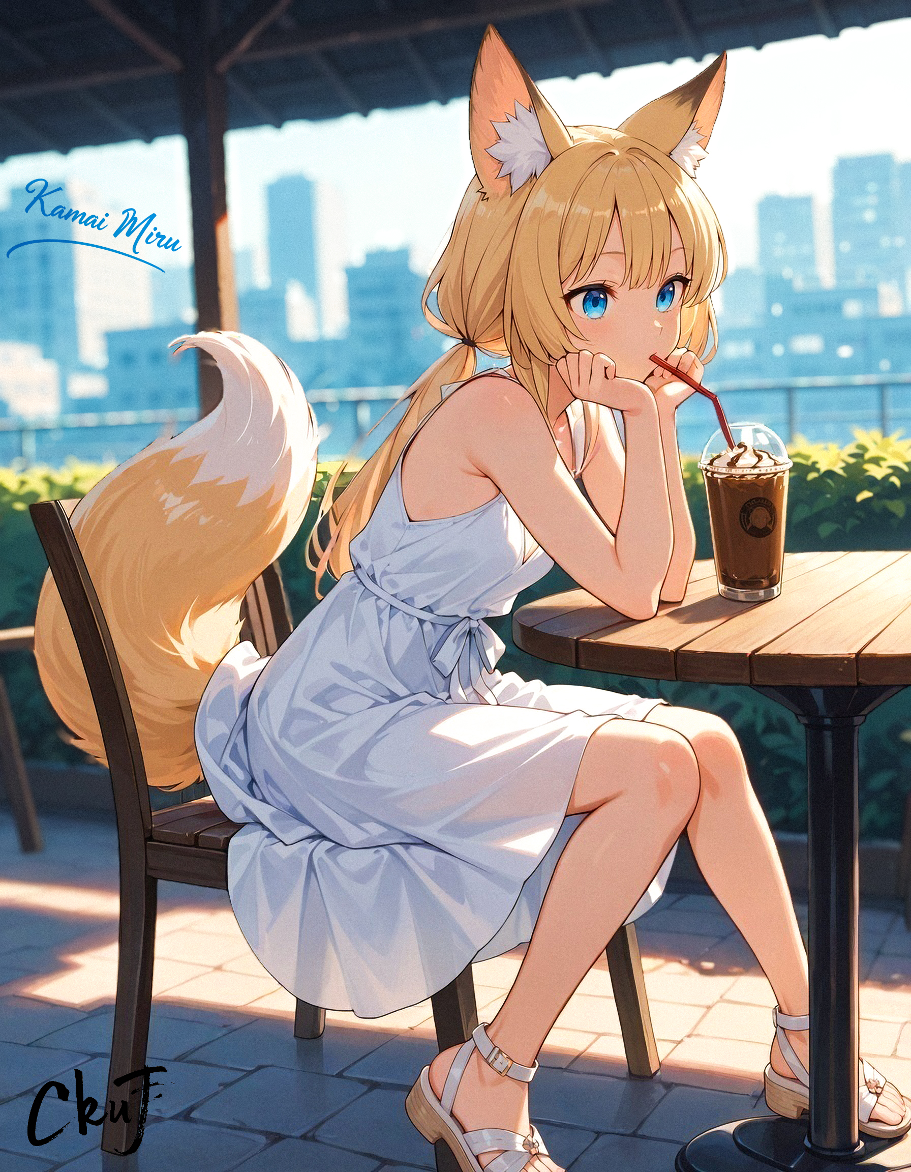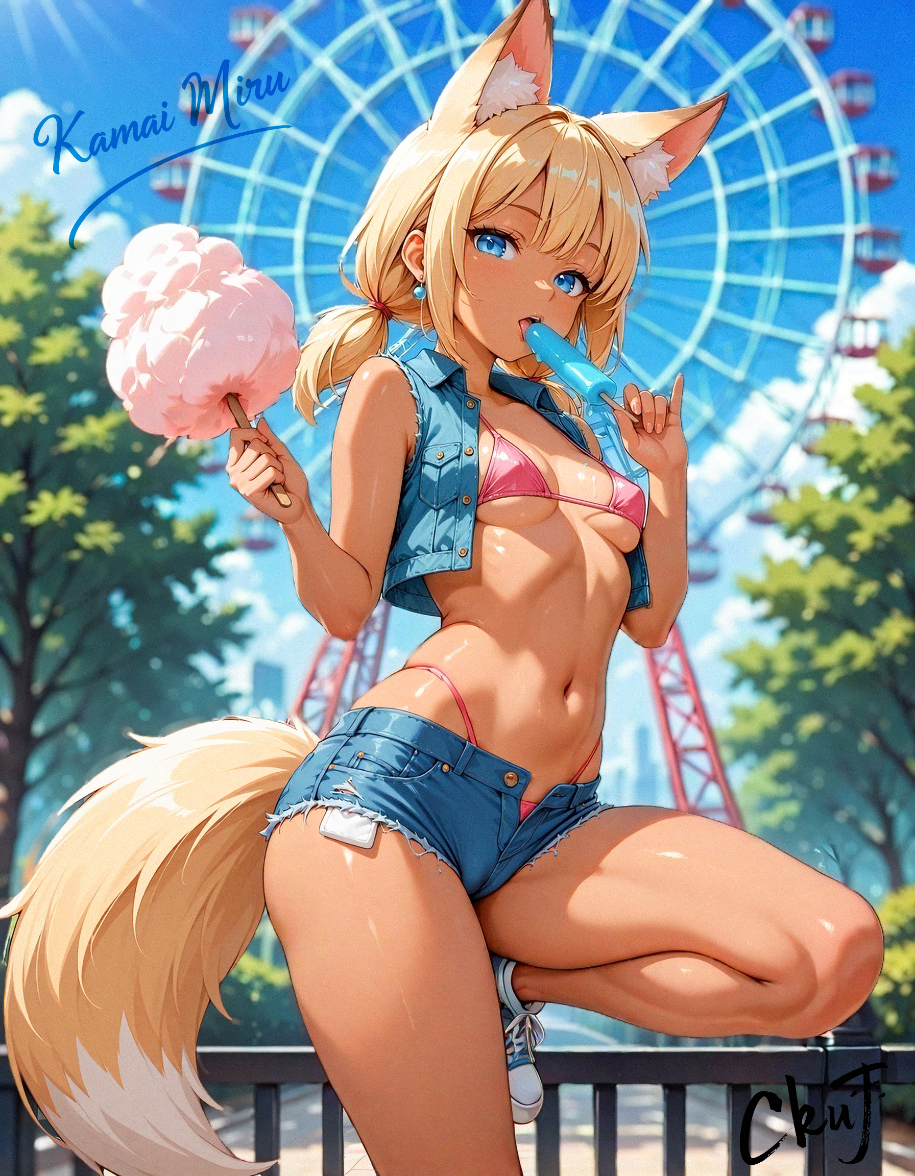 Activate: Kamai_Miru, 1girl, blonde, fox tail, low twintails, blue eyes