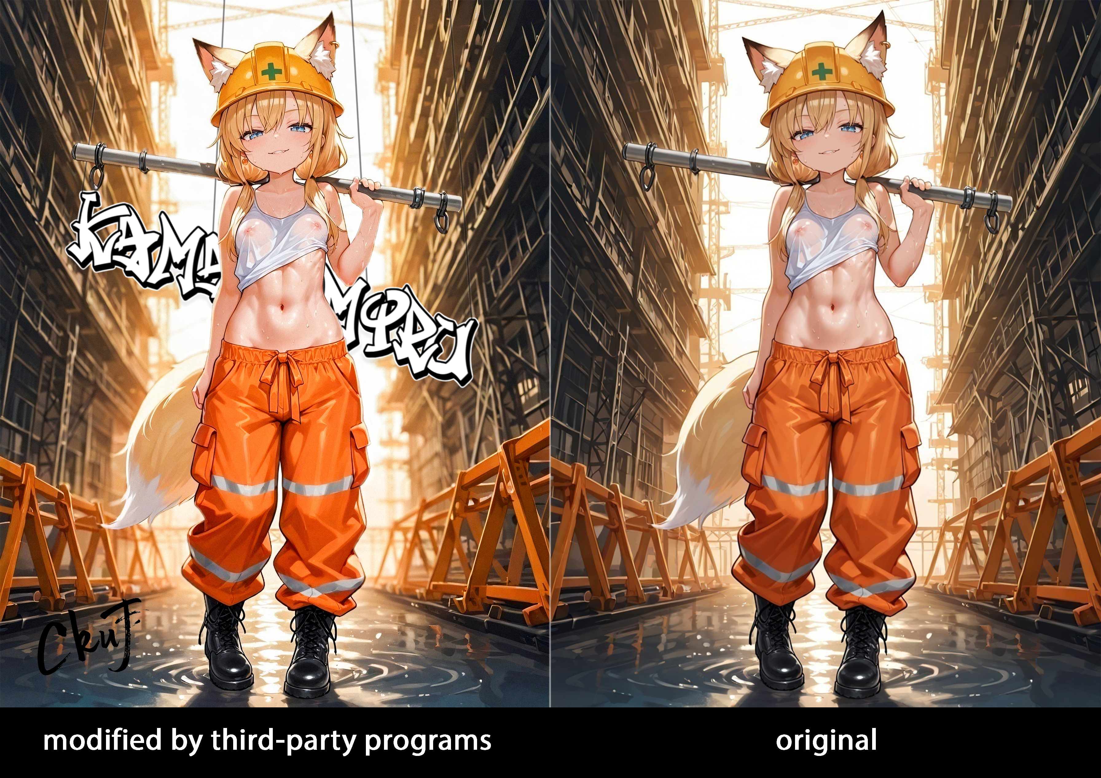 Not necessarily, but desirable: please, if you post your work somewhere, add the tag "Kamai_Miru" and, if possible, sign the image with the same name (Kamai Miru) somewhere in the corner (or stylized. For example, in the form of graffiti on the wall), so as not to disturb the eyes. Thank you 👈(゚ヮ゚👈)