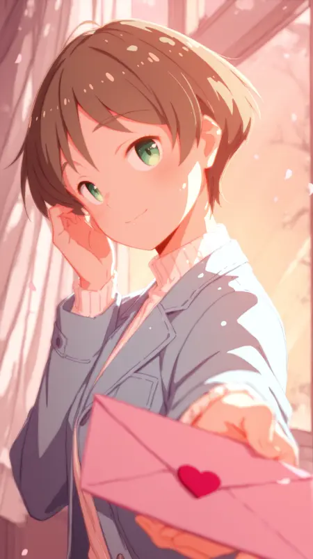 harumiya yukuri, ikizulive!, green eyes, brown hair, short hair, bangs, hair between eyes