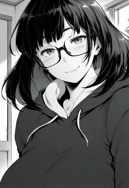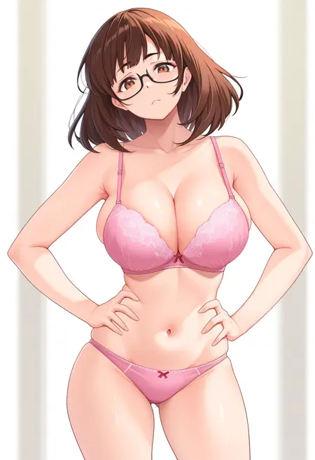 - mihoww, 갈색 눈, 갈색 머리, 중간 길이 머리, 안경, 큰 가슴,
