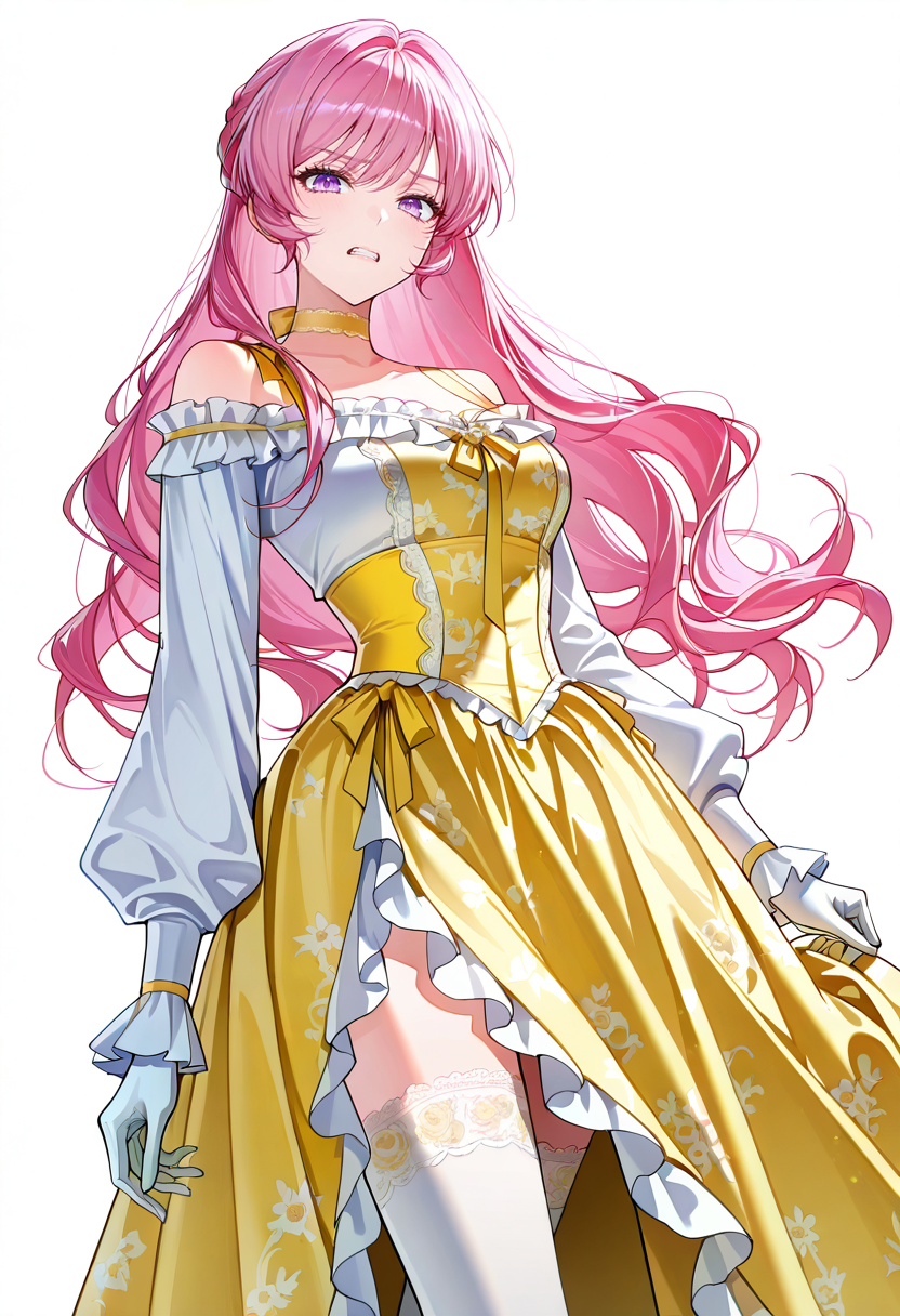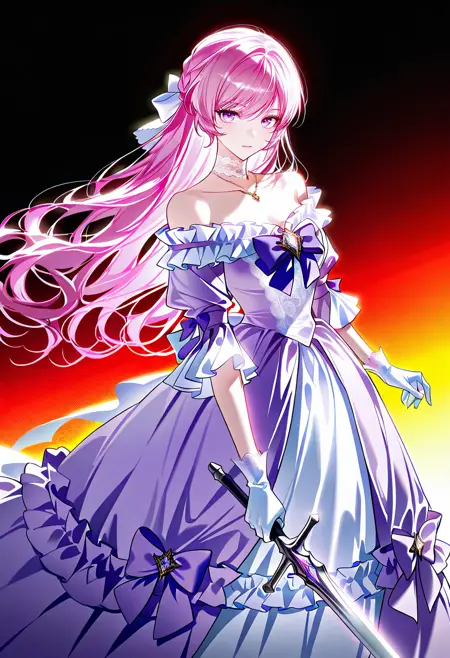 echinacea, pink hair, long hair, purple eyes,