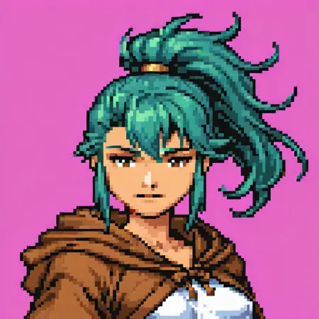 触发词: CCOTA, pixelart, simple background, pink background, close-up, portrait