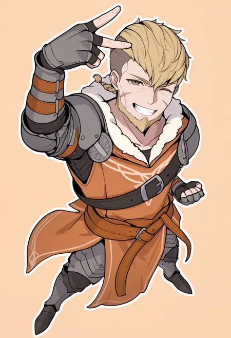 自定义服装: j3ralt,金发,短发,剃边,编发马尾,棕色眼睛,脸颊有疤痕,胡须