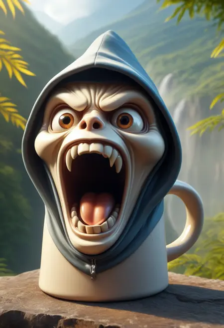 你有没有想象过,你的早晨咖啡正回望着你——字面意义上的?使用“拟人化咖啡杯”模型,你的渲染作品将展现出古怪甚至略带惊悚的魅力。这个SDXL LoRA能将角色和生物转化为富有表现力的拟人化咖啡杯,每个杯子都拥有如双份浓缩咖啡般强烈的个性。无论是咧嘴笑的哥布林杯,还是宁静的猫头鹰杯,这种风格都能为任何生成作品增添幽默而奇异的转折。