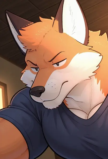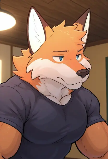 "furry, tail, orange fur, very fluffy, neck tuft, neck fluff, black eyes, muscular, strongman waist, thick arms, thick thighs, pectorals"可选提示: