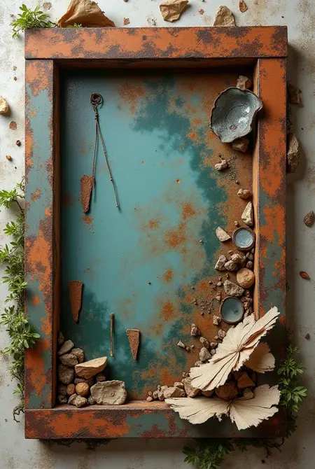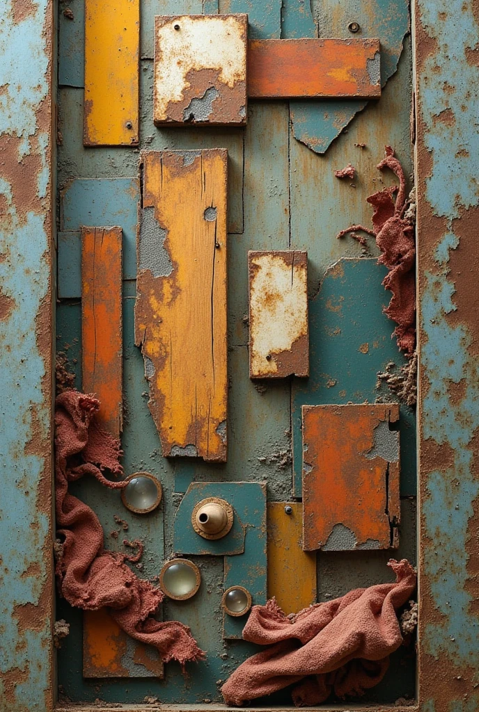 •Style Keywords: Upcycled, weathered, textured, imperfect, patchwork, industrial, eco-futuristic, steampunk, collage-style