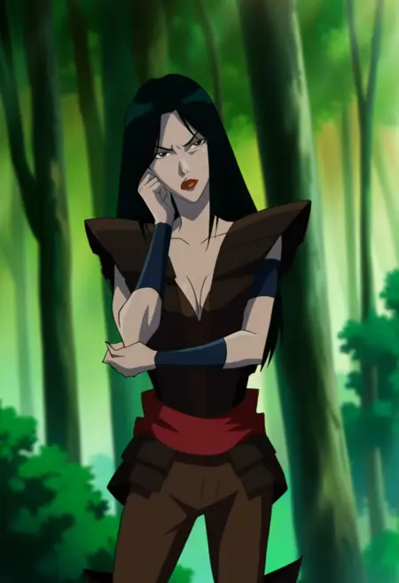 lady deathstrike, black hair, long hair, medium breasts, makeup,