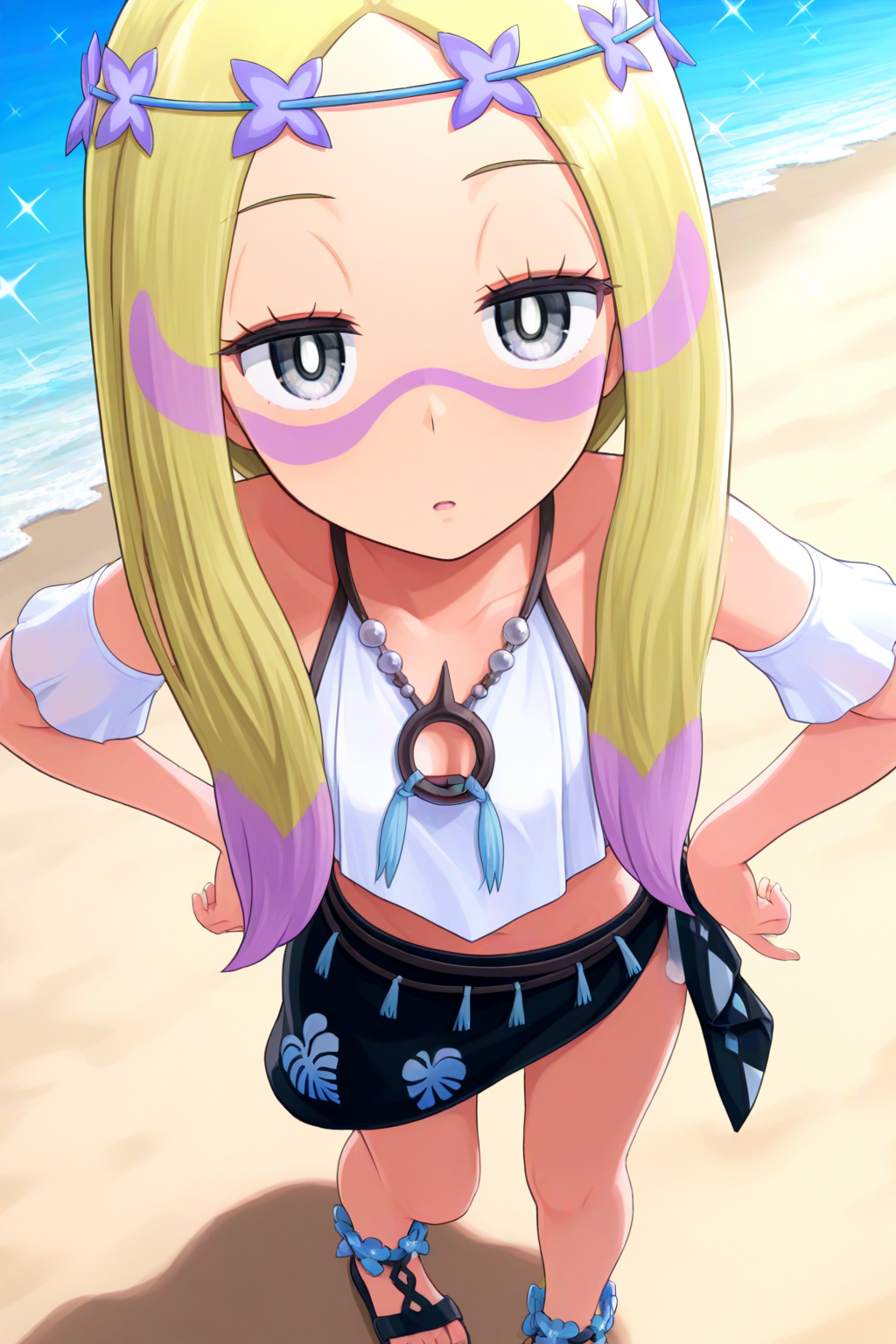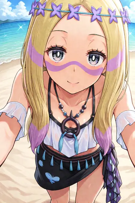 sygmina, grey eyes, white pupils, blonde hair, long hair, two-tone hair, facepaint