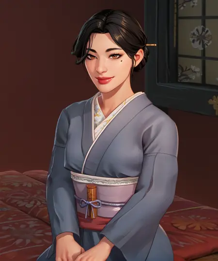 Murayamaxl,棕色眼睛,黑色头发,束发、发髻或盘发