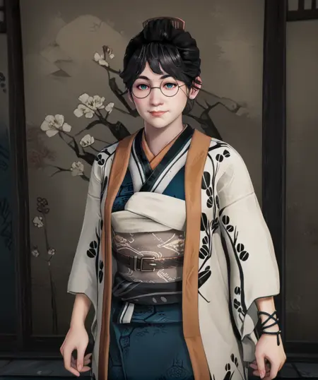 blue kimono or black kimono results may vary - suggest coat, in NEG if not using