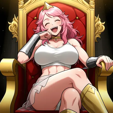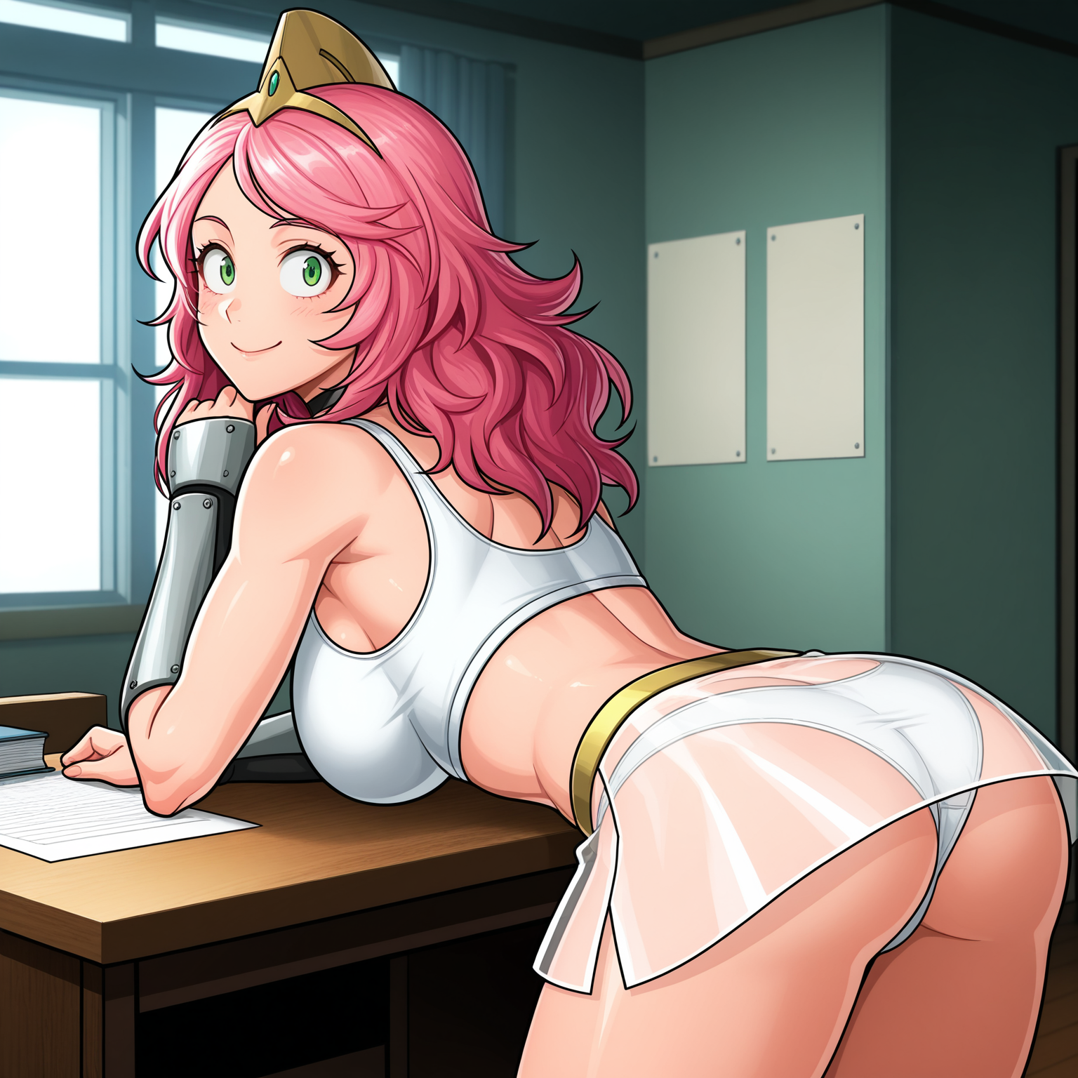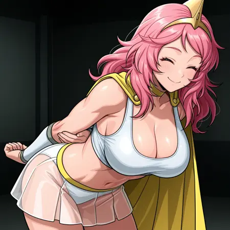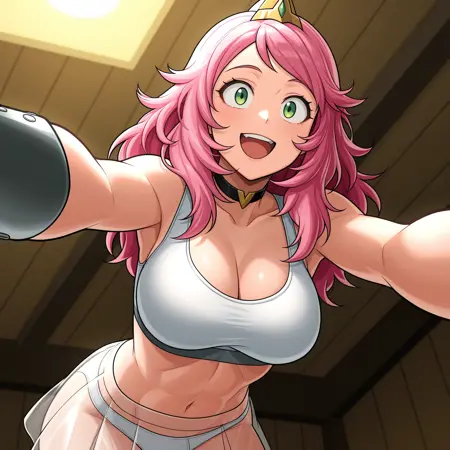 JacquelineKM, pink hair, long hair, headgear, green eyes, sanpaku, large breasts, toned female,
