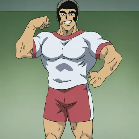 | 학습된 단어 | Musashi, solo, male focus, tall, muscular, buff physique, pectorals, short spiky black hair, thick eyebrows, black eyes, strong jawline, athletic build, white gym shirt with red trim, red gym shorts with white stripe along the sides, white long socks, white gym shoes 복사됨! |