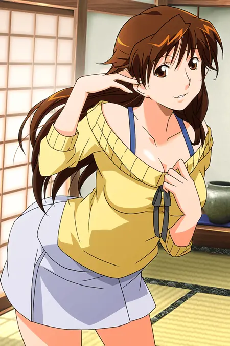 触发词:桐原麻里、田中亮,棕色头发,长发,棕色眼睛,大胸部