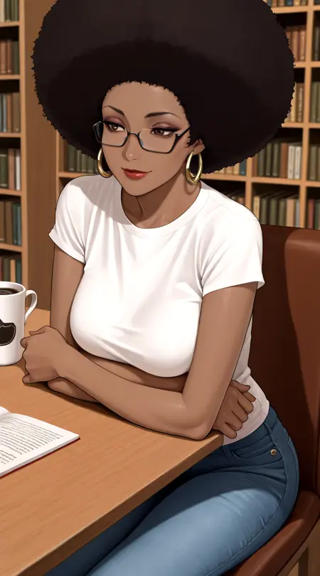 Example Prompt for default look: coffee_(cowboy_bebop), std_outfit, black_dress, sunglasses, hoop_earrings, high_heels, short_dress