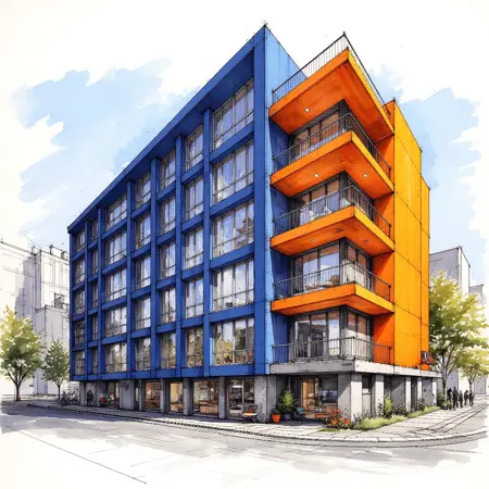 材质集使用:512x512 单栋别墅、独立建筑及其他手绘马克笔素材,配色生动。