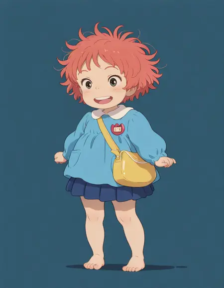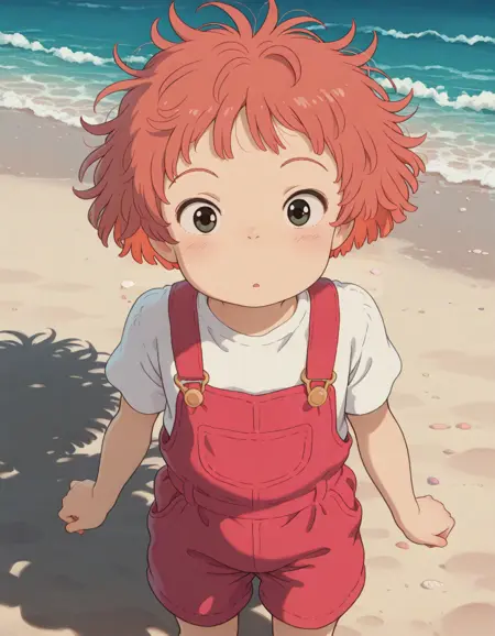 ponyo, 1girl, solo, child, short hair, orange hair, messy hair