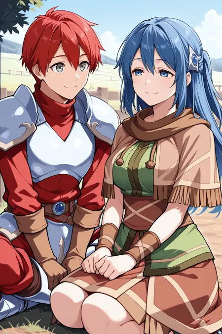 Ys VIII 스타일을 원한다면 "ysviiiadlc, 빨간 머리, 단발, 회색 눈, 빨간 조끼, 흰색 소매, 짧은 소매, 흰색 셔츠, 짧은 재킷, 갈색 장갑, 팔보호대, 벨트, 진한 파란색 바지, 갈색 부츠, 십자 끈 부츠"를 추가하세요.