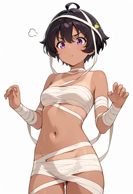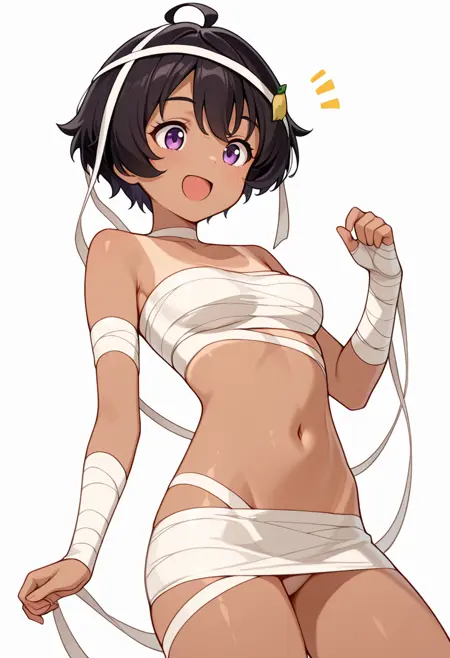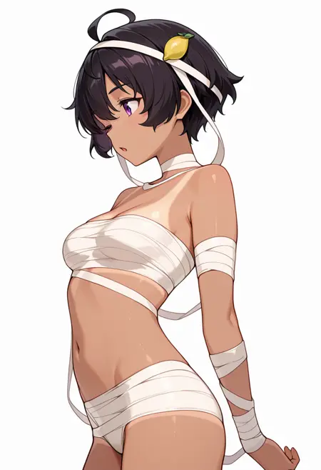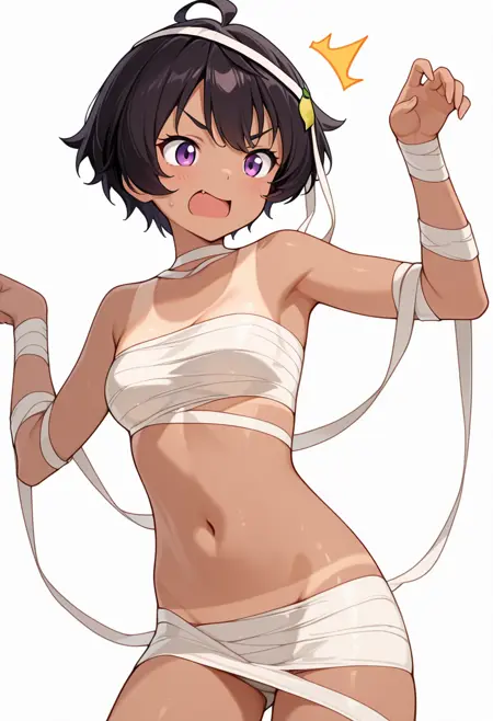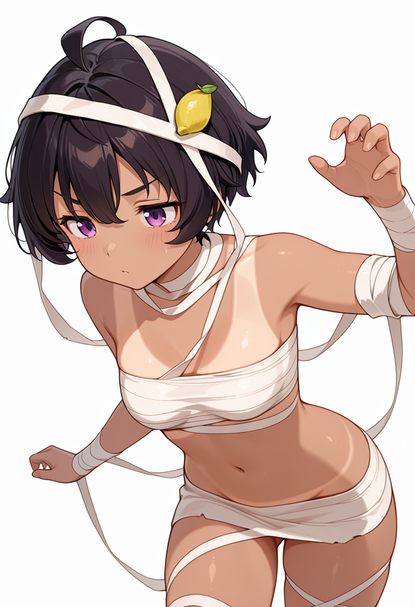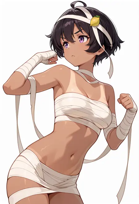 lemon_s2,mummy costume,chest sarashi,tanlines, navel,bandages, naked bandage, bandaged arm,