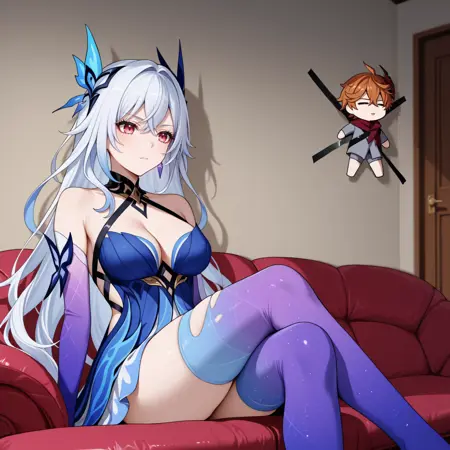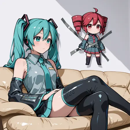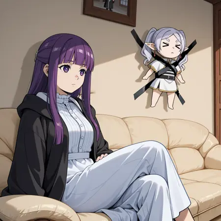 トリガー語:座っている、縛られている(性的でない)、屋内、テープ、ソファ上、足を組んでいる