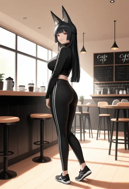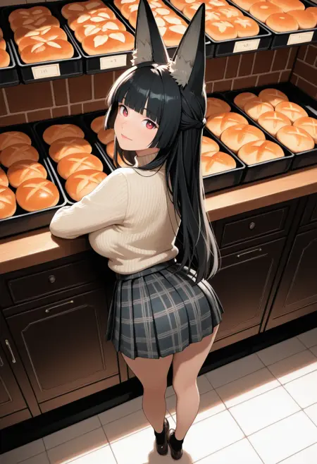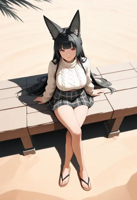 (Positive Prompts) zmiyabi, fox girl, fox ears, animal ear fluff, large breasts, sidelocks, blunt bangs, black hair, long hair, center-flap bangs, red eyes,