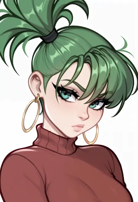 Character Tags: green eyes, green hair, short hair, side ponytail