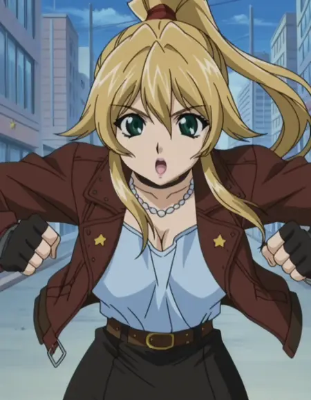 | 训练词汇 | Rio Kinezono S,blonde hair,green eyes,large breasts,long hair,high ponytail, Pink lips, large breast, slim body, blue hair tie, 已复制! police uniform, white collared short sleeves shirt, blue necktie, black vest with yellow edges and buttons, police emblem on the sleeves, Brown leather belt, blue miniskirt, fingerless gloves, black and gray gloves, White thighhighs, Brown gun holster, black high heles, blue and yellow police hat,已复制! thight red top bodysuit , thight black bodysuit bottom, thight black bodysuit sleeves, light blue armor, red shoulder pads with black edges, light blue wristbands, black gloves, ight blue knee pads, black boots , black Communicator, black gun holster已复制! |