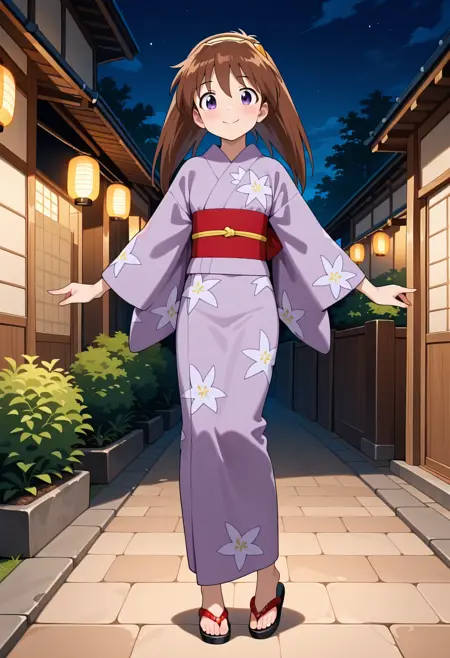 nanase_narue, narue_yukata, brown hair, long hair, purple eyes,